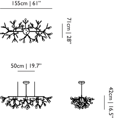 400 cm | 157,5″; 1000 cm | 393,7″
