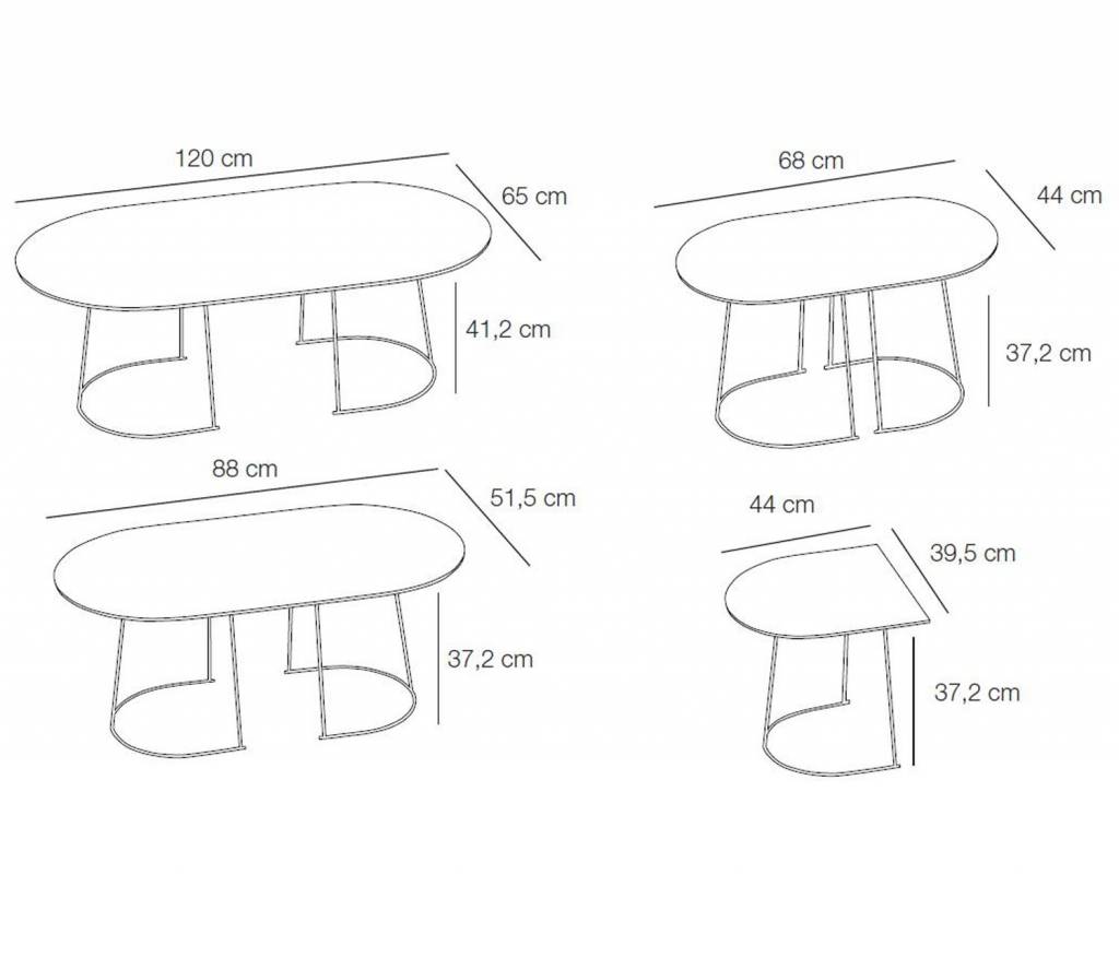 Airy Coffee Table fra Muuto er et lett og luftig bord som er designet av Cecilie Manz. Men det tynne og enkle designet på understellet får man en følelse av at toppen på bordet flyter. Det er fire bordstørrelser i serien, alt egnet for en rekke funksjoner, fra sidebord til salongbord. Airy Table-serien har en lekfull, men likevel rolig personlighet.