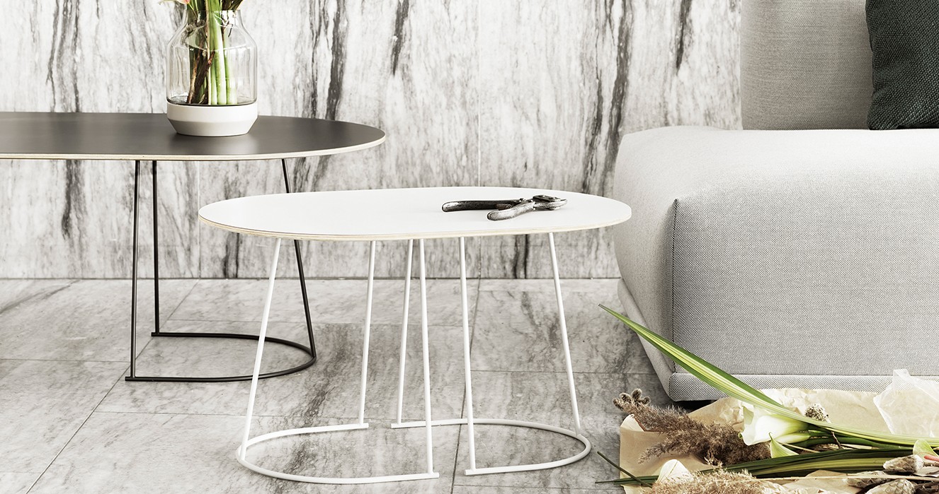 Airy Coffee Table fra Muuto er et lett og luftig bord som er designet av Cecilie Manz. Men det tynne og enkle designet på understellet får man en følelse av at toppen på bordet flyter. Det er fire bordstørrelser i serien, alt egnet for en rekke funksjoner, fra sidebord til salongbord. Airy Table-serien har en lekfull, men likevel rolig personlighet.