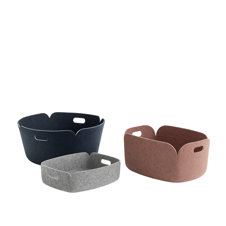 RESTORE Round Basket- Designed by Mika Tolvanen – RESTORE serien kan brukes til alle slags papirer , gjenstander og finnes i størrelser som passer til alle mulige plasser. Kurvene er i hovedsak laget av fibre utvunnet fra resirkulerte plastflasker.