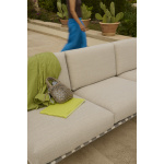 Settle Outdoor Sofa inviterer deg til å sette deg ned i komforten, og gir en ideell setting for å nyte utendørs hele dagen. Den luftige stålrammen, komplett med synlige belter og intrikate detaljer, forbedrer dens visuelle lokke fra alle vinkler, mens armlenene, laget av FSC™-sertifisert (FSC-C028824) sapele mahognitre, gir en varm, taktil følelse. Settles stålramme er galvanisert, grunnet og pulverlakkert, noe som sikrer korrosjonsbestandighet for langvarig bruk. Plysjputene, laget med hurtigtørkende skum og slitesterke utendørstekstiler, tilbyr hurtigtørkende motstandskraft i regnbyger og holdbarhet året rundt når de brukes med et utendørstrekk.