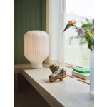 Strand-bordlampen refererer til designhistorie mens den forblir utpreget moderne. Formen er myk og leken, og dens skulpturelle design er utstyrt med en skjult lyskilde som lyser opp hele den monolittiske formen. Lampen er laget av sprayet kokongmateriale som består av bittesmå tråder for en kompleks, spennende struktur som gir Strand-bordlampen et nesten skylignende utseende. Filtrerende lys for en varm, behagelig glød gir en følelse av komfort, harmoni og en raffinert følsomhet til ethvert rom. Stranden er tilgjengelig i både små og større størrelser, og tilbyr allsidig plassering – fra skrivebord og hyller til gulv for den større modellen.