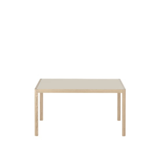 Workshop Table kombinerer idealene om skandinavisk håndverk og subtile detaljer for et bevisst enkelt og arketypisk uttrykk. Med bordplaten i enten eikefiner eller linoleum som skjærer seg harmonisk inn i den ramme av massiv eik, gir Workshop Table et raffinert og diskré utseende til alle omgivelser.