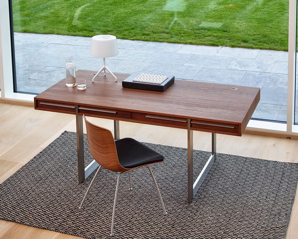 Et moderne, godt designet skrivebord med mange detaljer, hvorav den ene er for skjulte elektriske ledninger.