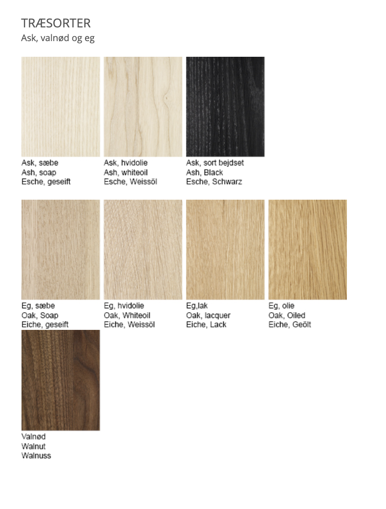 Speilene er tilgjengelige i tre forskjellige størrelser i eik, ask og valnøtt.
