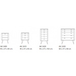 Kommoder kan stå fritt i rommet. Skuffene er med lønnesider og glidelås sammen.