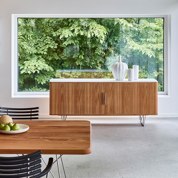 AK 2730 er en klassisk skjenk som har fått en moderne vri med Corian topp og håndtak samt rustfritt stålbunn. Kombinasjonen av de myke fasongene på lamelldørene og lysbunnen resulterer i en elegant skjenk som kan brukes de fleste steder – både i private hjem og for eksempel i konferanserom på arbeidsplasser.