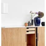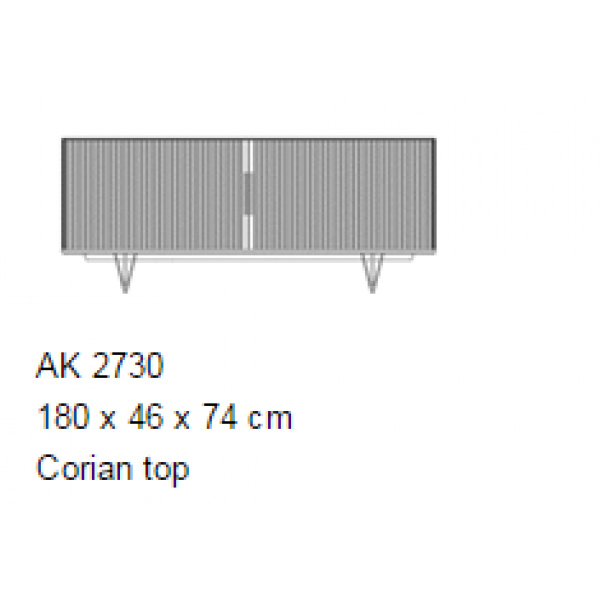 AK 2732 er en klassisk skjenk som har fått en moderne vri med Corian topp og håndtak samt Point tresokkel.. Kombinasjonen av de myke fasongene på lamelldørene og lysbunnen resulterer i en elegant skjenk som kan brukes de fleste steder – både i private hjem og for eksempel i konferanserom på arbeidsplasser.
