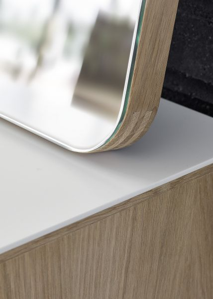 Speil – gjenspeiler minimalistisk enkelhet, rene linjer og ro. Full av karakter med sammenføyde hjørner for å være vitne til en dyp hengivenhet for skap. Glasset tjener bare til å understreke skjønnheten i rammen.