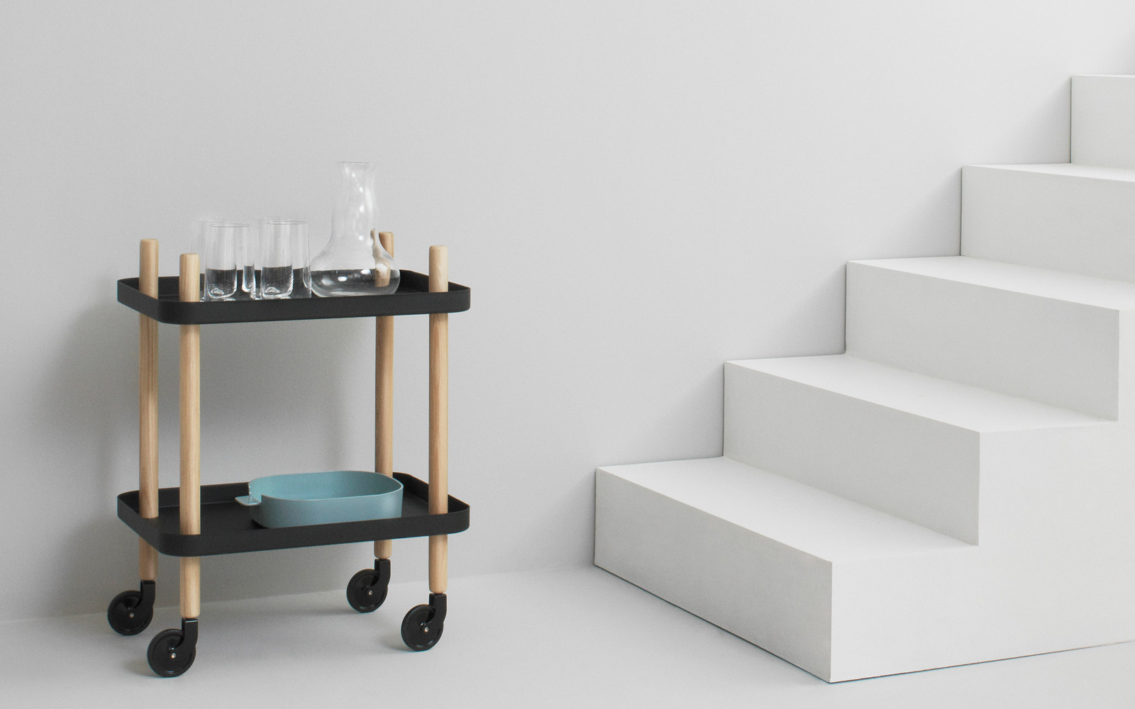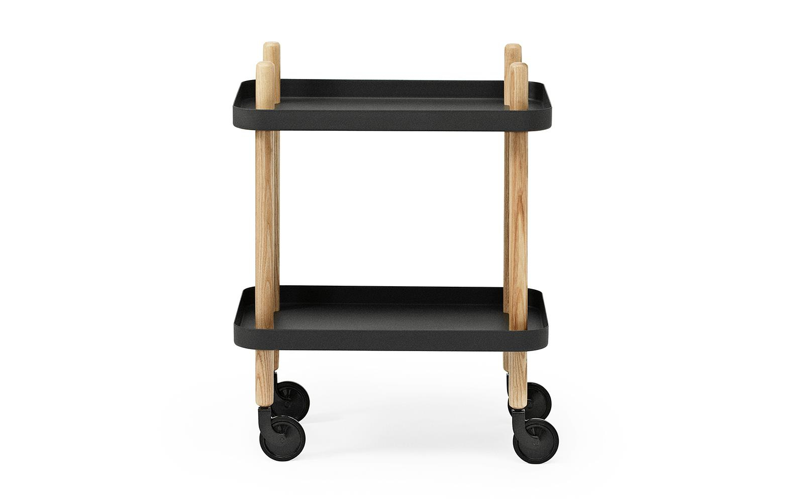 Designer Simon Legald ble inspirert av det klassiske trallebordet, som han har oppdatert og laget sitt eget med enkle, men likevel innflytelsesrike midler. Blocks avrundede form, kontrasterende materialer og kombinasjonen av håndverk og industri etterlater designers signatur på designet og gir bordet sitt unike uttrykk.