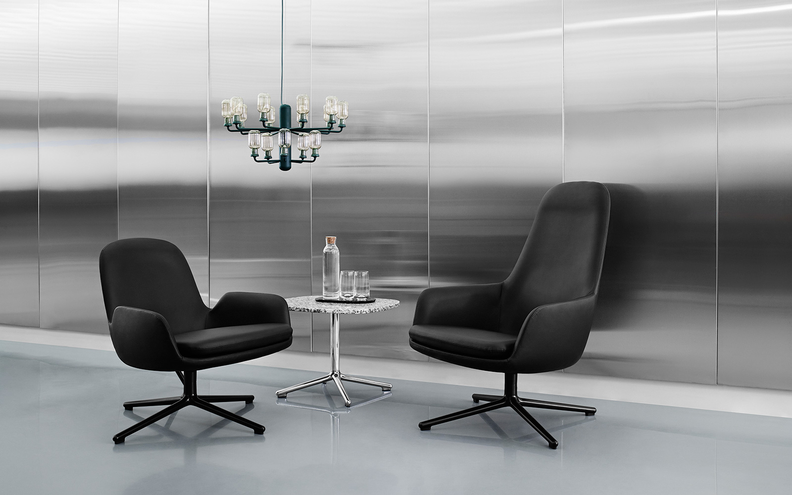 Era salongkolleksjon kombinerer moderne produksjonsteknikker med tradisjonelt møbelhåndverk i en tidløs og karakteristisk design. Era-sidebordet understreker elegant Era’s velproporsjonerte linjer og er en naturlig forlengelse av kolleksjonens design-DNA. «X» -formen på den svingbare foten gjentas i basen av Era-sidebordet, som leveres med en solid granitt-bordplate. Med sitt pulserende mønster og dempede fargenyanser, gjør granitten en smigrende partner til den kjølige aluminiumsbunnen. Det er tre forskjellige typer granitt å velge mellom, med svart, grått eller rosa dominerende i fargeskjemaet.