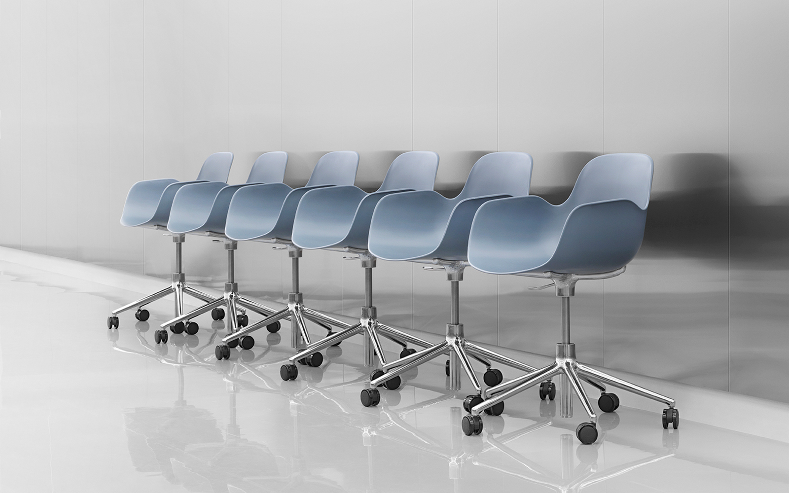 En feilfri sammenhengende design og visjonære variasjoner karakteriserer den bestselgende Form-samlingen, som ble introdusert i 2014 og blir kontinuerlig utvidet. Dreiestolen i kjølig aluminium gir Form-stolen et maskulin og eksklusivt utseende, samt en behagelig bevegelsesfrihet, noe som gjør stolen velegnet til steder som konferanserom og restauranter.