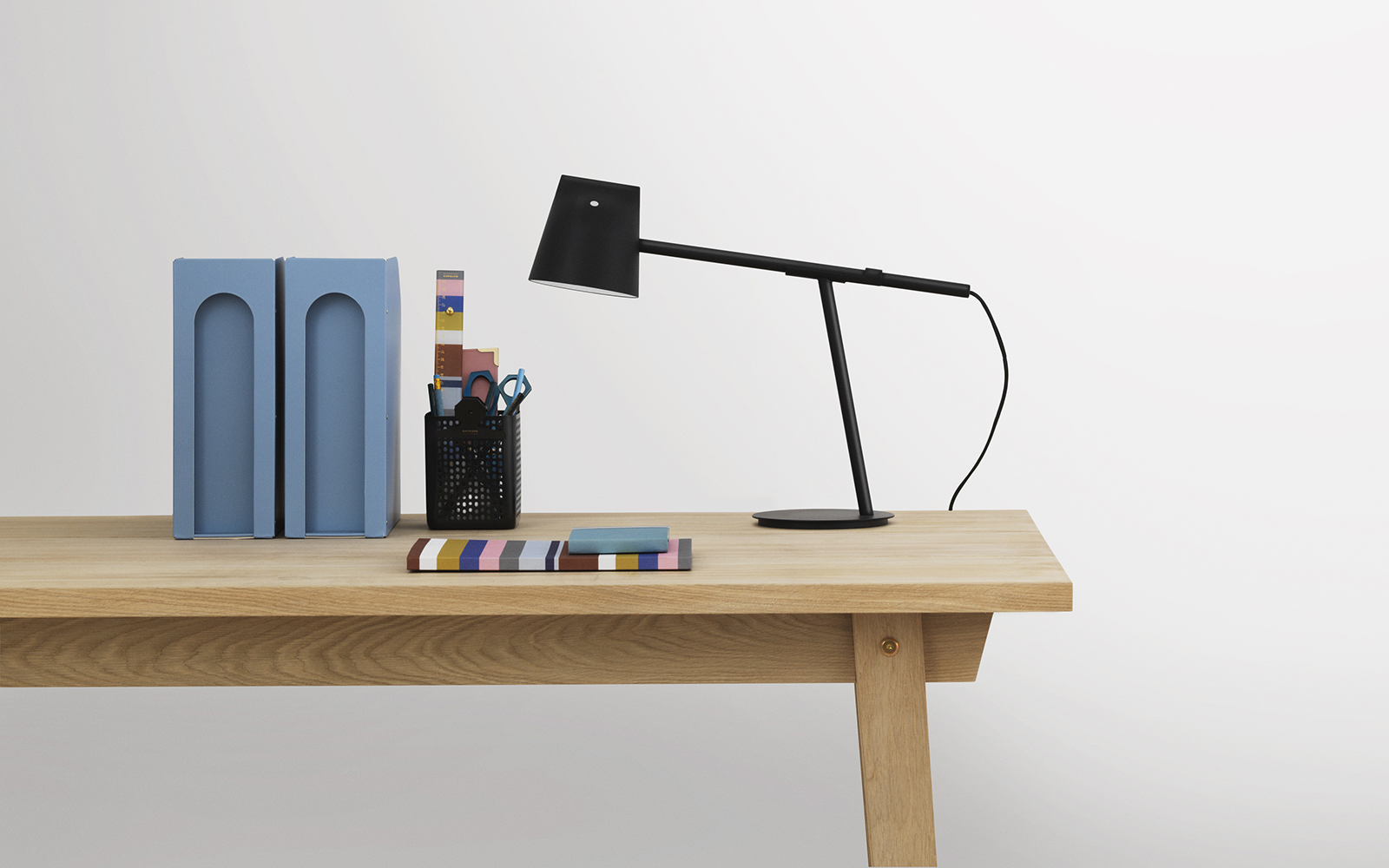 Designduoen Daniel Debiasi og Federico Sandri har designet denne tidløse og stilige bordlampen, som en ny og simpel versjon av den originale kontorlampen. I designet har de typiske detaljene blitt erstattet med elegant balansert arkitektur, som et lett å tilpasse belysningsbehovet for et hvert øyeblikk.