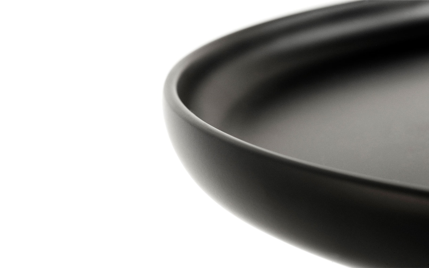Thomas Bentzens bærbare sidebord er treffende kalt ‘Don’t Leave Me’. Forkortet til DLM, og har et praktisk håndtak som gjør det mulig å bære metallbordet fra rom til rom. Selv om det har en lett og bærbar struktur, gir de tre skrå beina stor stabilitet. DLM og DLM XL, som er tilgjengelige i to størrelser, gir funksjonelle alternativer til tradisjonelle salongbord. Passer for innvendig bruk i de fleste hjemme- eller kontormiljøer.
