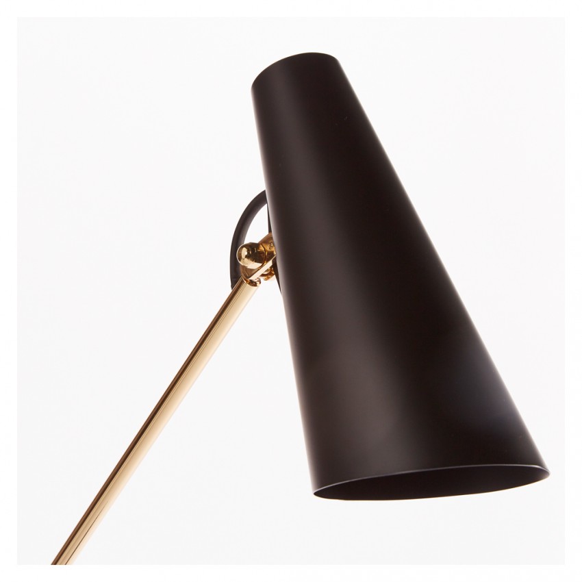 Grant Gulvlampe er tilgjengelig i fargene sort og messing. Lampene er spesialdesignet for å passe det sofistikerte hjemmekontoret, men er også ideelle som en nattlampe eller leselampe ved siden av lenestolen i stuen. Det godt gjennomtenkte kuleleddet i lampen gjør at lampeskjermen kan justeres avhengig av hvordan den skal brukes. Lampen er dimbar og gir et lys som ikke blender.