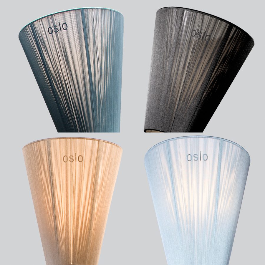 Oslo Wood gulvlampe fra Northern. Oslo Wood er en studiolampe med et tredelt benstativ. Skjermen, som har over 2000 silketråder svøpt for hånd, kan vinkles. Lampen gir et oppadrettet fast lys og en indirekte lyseffekt via trådene i skjermen som gir et varmt og diffust lys. Oslo Wood sprer lys på samme måte som man kan oppleve i skogene rundt Oslo. Lys strålene blir diffuse når de passerer gjennom skjermen, som konturene av byen som lyser opp himmelen en mørk vinternatt. Det er som om lyset filtreres gjennom trærne, i lampen filtreres lyset gjennom trådene i skjermen. Den oppadrettede belysningen i Oslo Wood gir sterkere konturer av lys enn de som når over tretoppene.