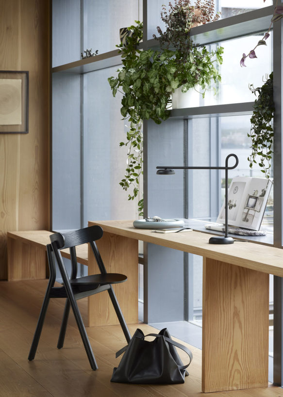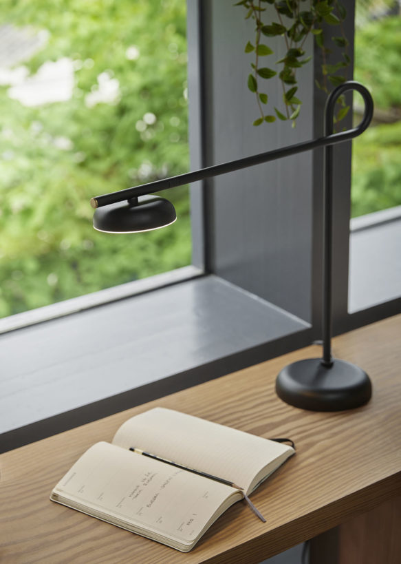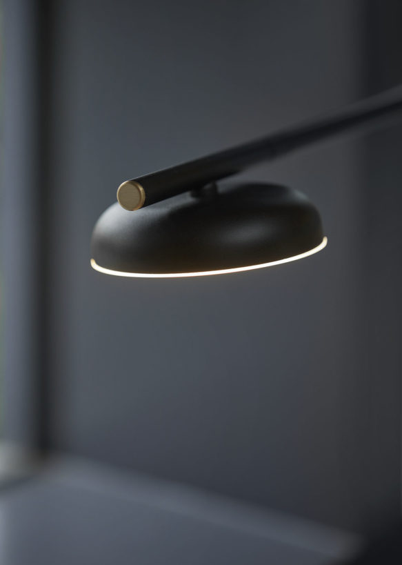 Salto går visuelt fra den vertikale foten til den horisontale armen i en jevn og sømløs bevegelse, og er tilgjengelig som gulvlampe og bordlampe og kommer i en matt svart eller beige finish. Den har også en diskret 3-trinns berøringsdimmer i messing foran på det integrerte LED-lyset, samt en justerbar skjerm og rotasjonsbase som gjør den like praktisk som den er vakker.