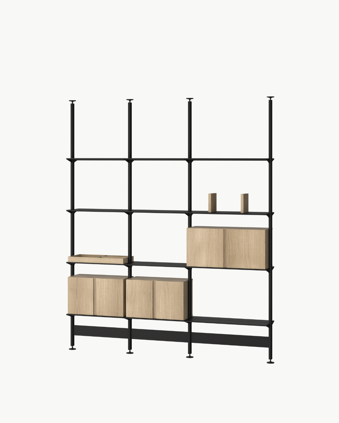 Med sin modulære oppbygning kan Pira G2 brukes på flere måter – enten som frittstående romdeler montert fra gulv til tak, eller som vegghengt hyllesystem i variantene Pira G2 W-A og Pira G2 W-B. Denne modellen (FC-B) er frittstående og leveres i tre høyder: 240–247 cm, 248–255 cm og 256–264 cm, slik at du kan tilpasse den til ditt rom.