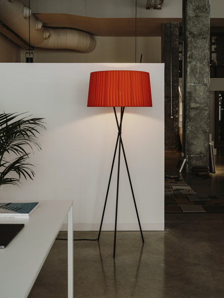 Trípode humaniserer nøytrale rom med sin fargerike og funksjonelle nøkternhet. Skyggen er kjærlig håndbåndet og basen kan ikke være mer stabil. Slått på, gir det et karakteristisk, varmt lys, rik på nyanser. Slått av er det en liten volumetrisk skulptur som inviterer til umiddelbar bruk.