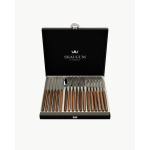 Dette bestikket er laget for å brukes og beundres – et perfekt valg for både hverdagslige måltider og spesielle anledninger. Kontrasten mellom skaft og stål gir et moderne og tidløst preg som passer inn i ethvert hjem.