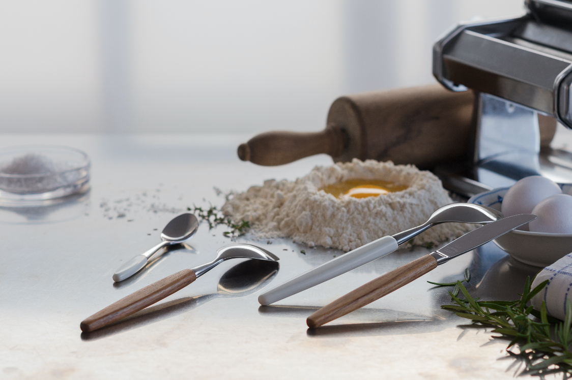 Skaugums design fra 1946 legger vekt på at bestikket både skal være godt å spise med og å holde i hånden. Det håndsmidde bestikket kommer i tre farger med plastskaft samt to versjoner med treskaft. Dette var opprinnelig i teak og palisander, men palisander ble senere erstattet med Kebony, et spesialbehandlet norsk trevirke.