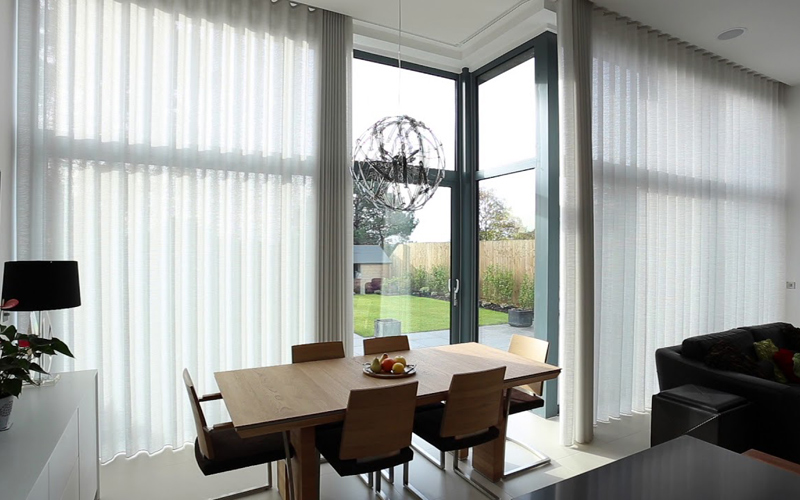 Fordelen med dobbel bredde er at det kan lages en uendelig bred gardin uten vertikale skjøter/sømmer. Dette er en stor fordel ved f.eks mange nybygg, hvor trenden er at vinduer går fra fulv til tak og i tillegg er svært brede.