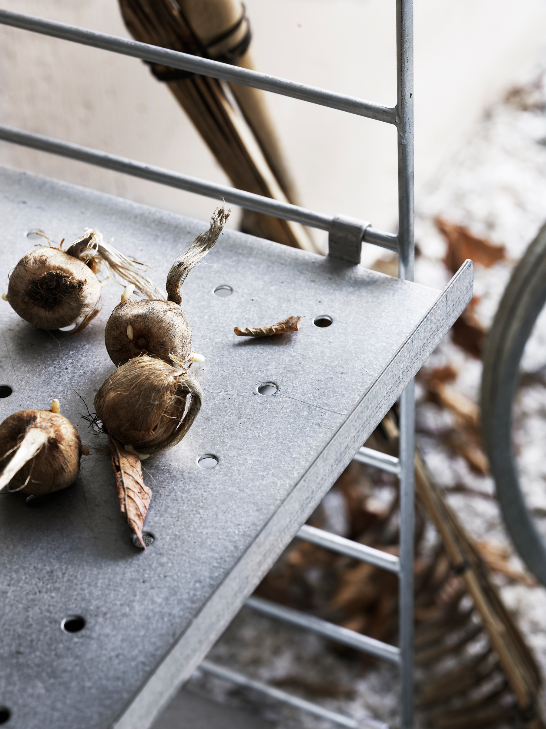 For det store området med mye plass og få begrensninger, skaper dette større hyllesystemet et spennende og stemningsfullt uterom. Som et supplement til utekjøkkenet ditt, et hjem for plantene dine, eller hvorfor ikke begge deler? Med gavler og hyller i galvanisert metall endres overflaten over tid og gir deg en vakker patina. Gavlene monteres i vegg.