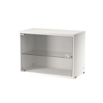 Vitrineskapet med svingdør i glass finnes i en bredde 58 og en dybde på 30 cm. Vitrineskapene passer inn i alle trådpaneler fra String® System dersom dybden på panelene er 30 cm. Det er visuelt behagelig å legge til et dristigere element til hyllen din, som et skap, som også gir deg mye ekstra oppbevaring og muligheten til å vise frem noe skjørt. Vitrineskapet består av én justerbar innerhylle i glass.
