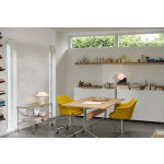 About A Chair AAC21 har en svingbar base i stål, og gir et mer formelt uttrykk enn sine trebente kolleger fra serien. Det særegne buede skallet gir en myk, enhetlig silhuett og ben som vifter ut fra den sentrerte basen. Den svingbare basen i støpt aluminium er tilgjengelig i polerte eller pulverlakkerte overflater, og polypropylenskallet kommer i forskjellige farger og polstringsmuligheter, noe som gir en rekke designkombinasjoner som gjør denne serien så allsidig.