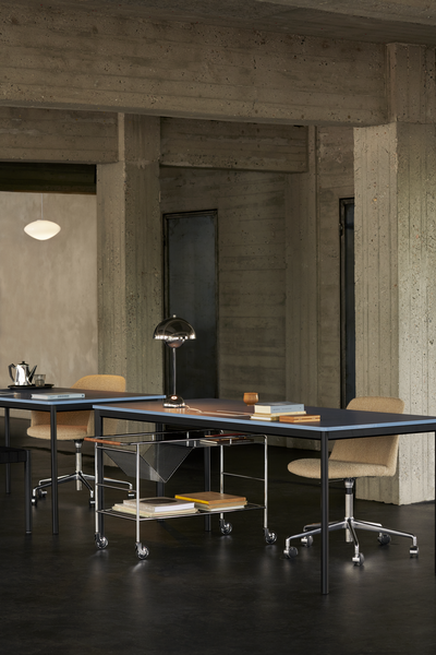 Inspirert av det «kreative kaoset» ved å jobbe hjemmefra, bestemte Note Design Studio seg for å lage en lagringsenhet som skulle inneholde samlingen deres av magasiner, tegninger og gjenstander. Resultatet ble en elegant vogn med en karakteristisk V-formet design innebygd i overflaten som gjør at stablede bøker enkelt kan lagres og vises.