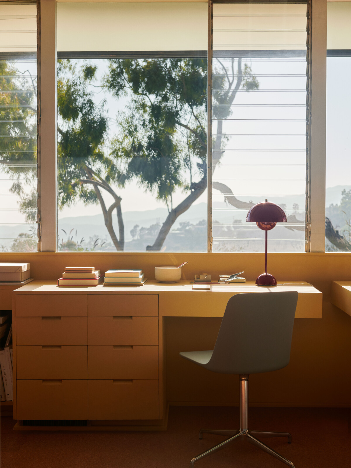 Flowerpot-lampen ble synonymt med Flower Power-bevegelsen fra slutten av 60-tallet. Gjenspeiler et brudd fra konvensjonen for å omfavne en mer åpen, moderne mentalitet som fremmet fred og harmoni. Slik var tankegangen til designeren Verner Panton. Et av de mest fremtidsrettede talentene i sin tid. Flowerpot-serien består av flere ulike modeller, inkludert tre pendler og to bordlamper – alle i et bredt spekter av farger.
