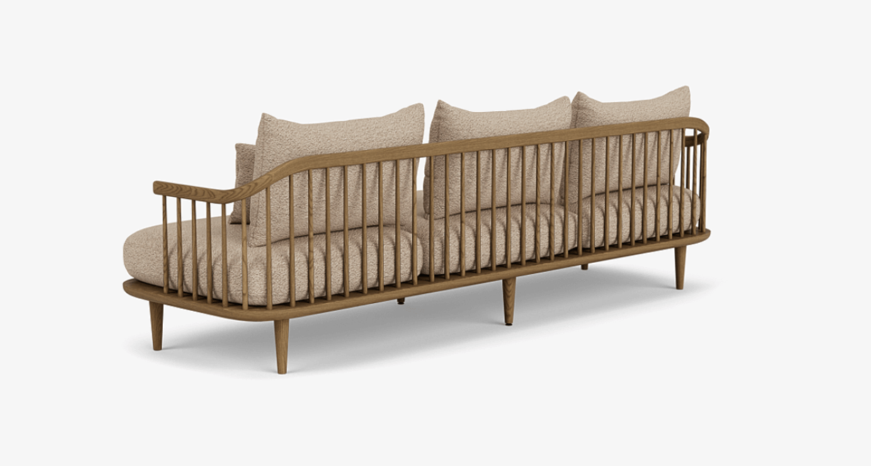 Space Copenhagens Fly-serie signaliserer en skulpturell tilnærming til design uten å ofre komfort. Refererer til en klassisk nordisk estetikk, detaljer og teknikker, sett i ryggstøtten i spaltetre, organiske former og solid håndverk. Fly er en serie som lar brukerne sitte, ligge, hvile og slappe av. I motsetning til mange av sofaene og lenestolene i skandinavisk designhistorie, pålegger Fly ikke sitteren noen spesiell holdning. Selve setet er optimalisert for komfort, med løse puter for ryggen som kan ordnes etter brukerens egne behov.