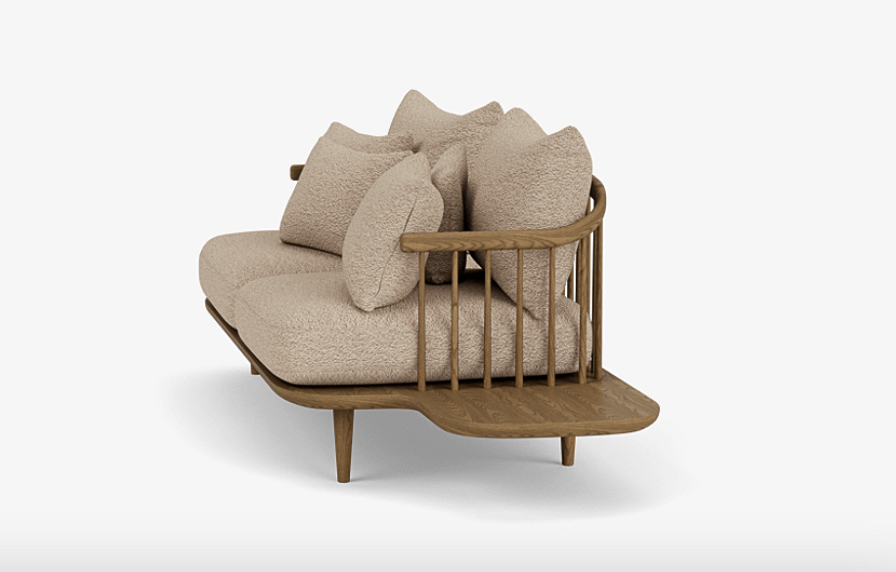 Space Copenhagens Fly-serie signaliserer en skulpturell tilnærming til design uten å ofre komforten. Med referanse til en klassisk nordisk estetikk, detaljer og teknikker, sett i rygglenet på spalter, organiske former og solid håndverk. Fly er en serie som lar brukerne sitte, ligge, hvile og slappe av. I motsetning til mange av sofaene og lenestolene i skandinavisk designhistorie, pålegger Fly ikke sitteren noe særlig holdning. Selve setet er optimalisert for komfort, med løse puter for ryggen som kan ordnes etter brukerens egne behov.