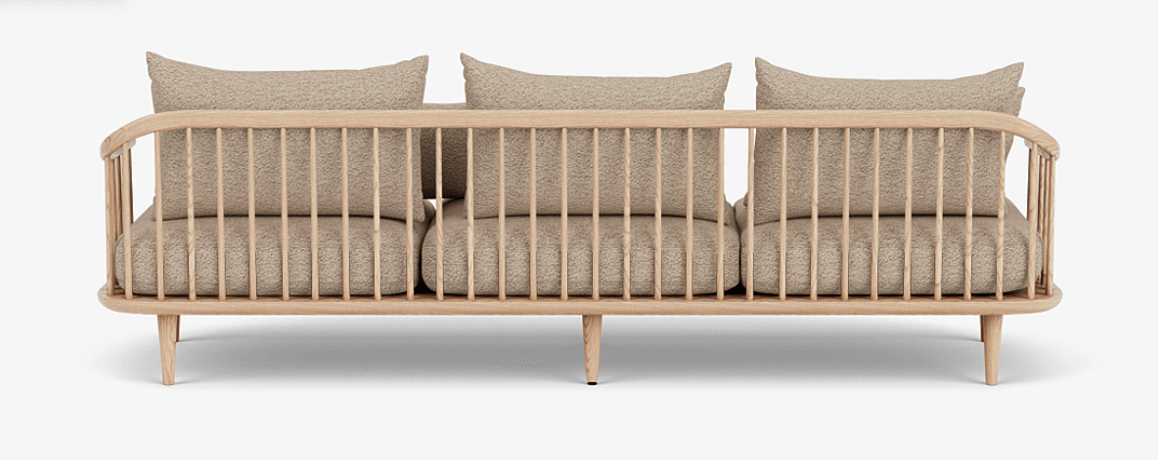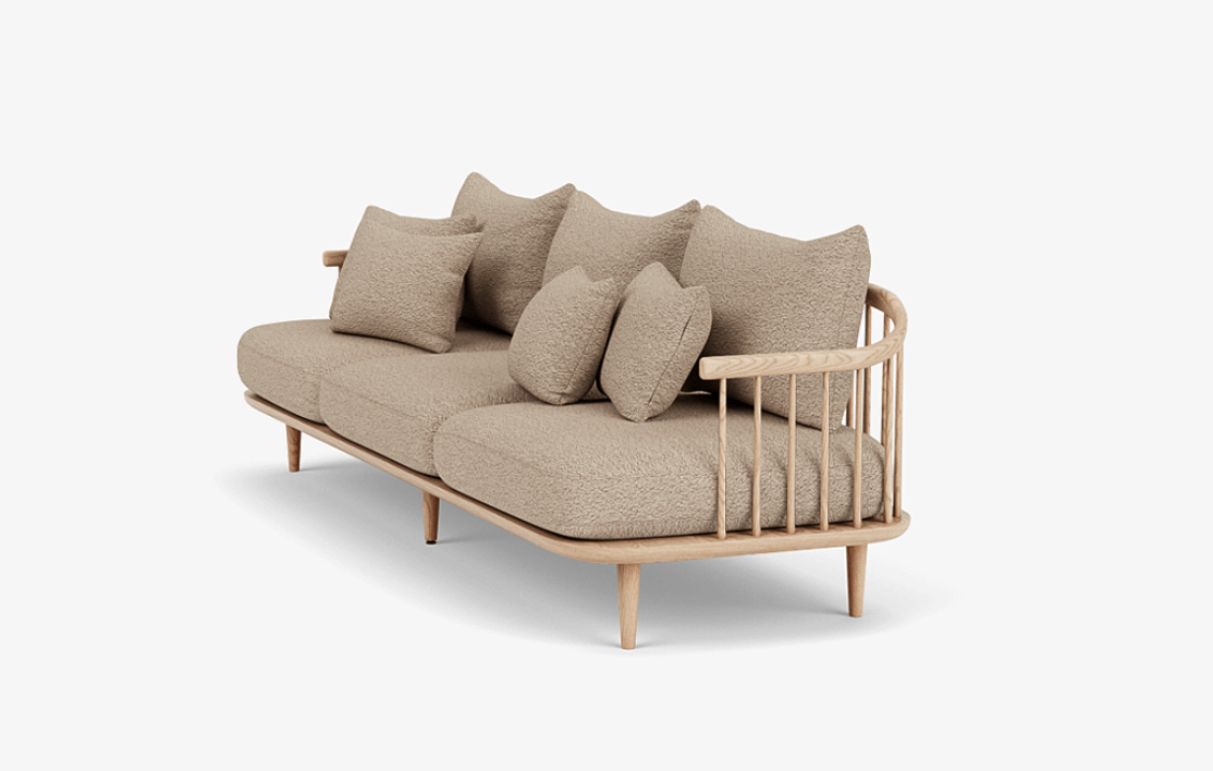 Space Copenhagens Fly-serie signaliserer en skulpturell tilnærming til design uten å ofre komfort. Refererer til en klassisk nordisk estetikk, detaljer og teknikker, sett i ryggstøtten i spaltetre, organiske former og solid håndverk. Fly er en serie som lar brukerne sitte, ligge, hvile og slappe av. I motsetning til mange av sofaene og lenestolene i skandinavisk designhistorie, pålegger Fly ikke sitteren noen spesiell holdning. Selve setet er optimalisert for komfort, med løse puter for ryggen som kan ordnes etter brukerens egne behov.