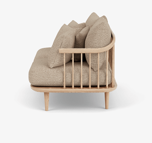 Space Copenhagens Fly-serie signaliserer en skulpturell tilnærming til design uten å ofre komforten. Med referanse til en klassisk nordisk estetikk, detaljer og teknikker, sett i rygglenet på spiler, organiske former og solid håndverk. Fly er en serie som lar brukerne sitte, ligge, hvile og slappe av. I motsetning til mange av sofaene og lenestolene i skandinavisk designhistorie, pålegger Fly ikke sitteren noe særlig holdning. Selve setet er optimalisert for komfort, med løse puter for ryggen som kan ordnes etter brukerens egne behov.