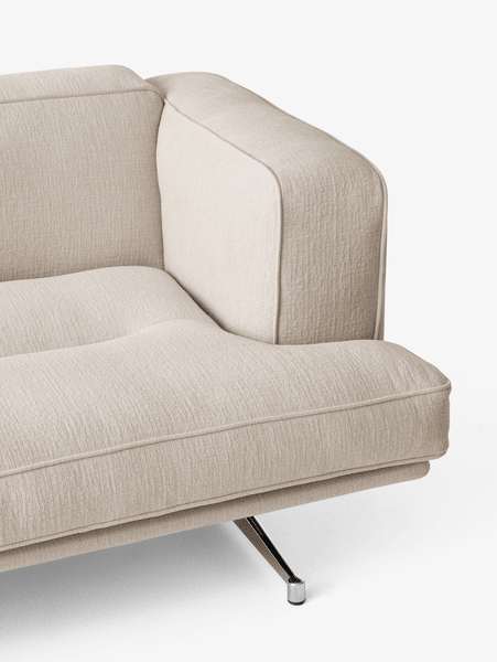 Designet av Torbjørn Anderssen og Espen Voll, tilbyr Inland-serien et arkitektonisk rammeverk som prioriterer komfort uten å gå på kompromiss med stilen. Opprinnelig utgitt som en to- og treseters sofa, inkluderer Inland-serien nå en elegant loungestol og allsidig puff, som begge gjenspeiler det originale designet med innbydende kurver og en stålfot som skaper en flytende illusjon.