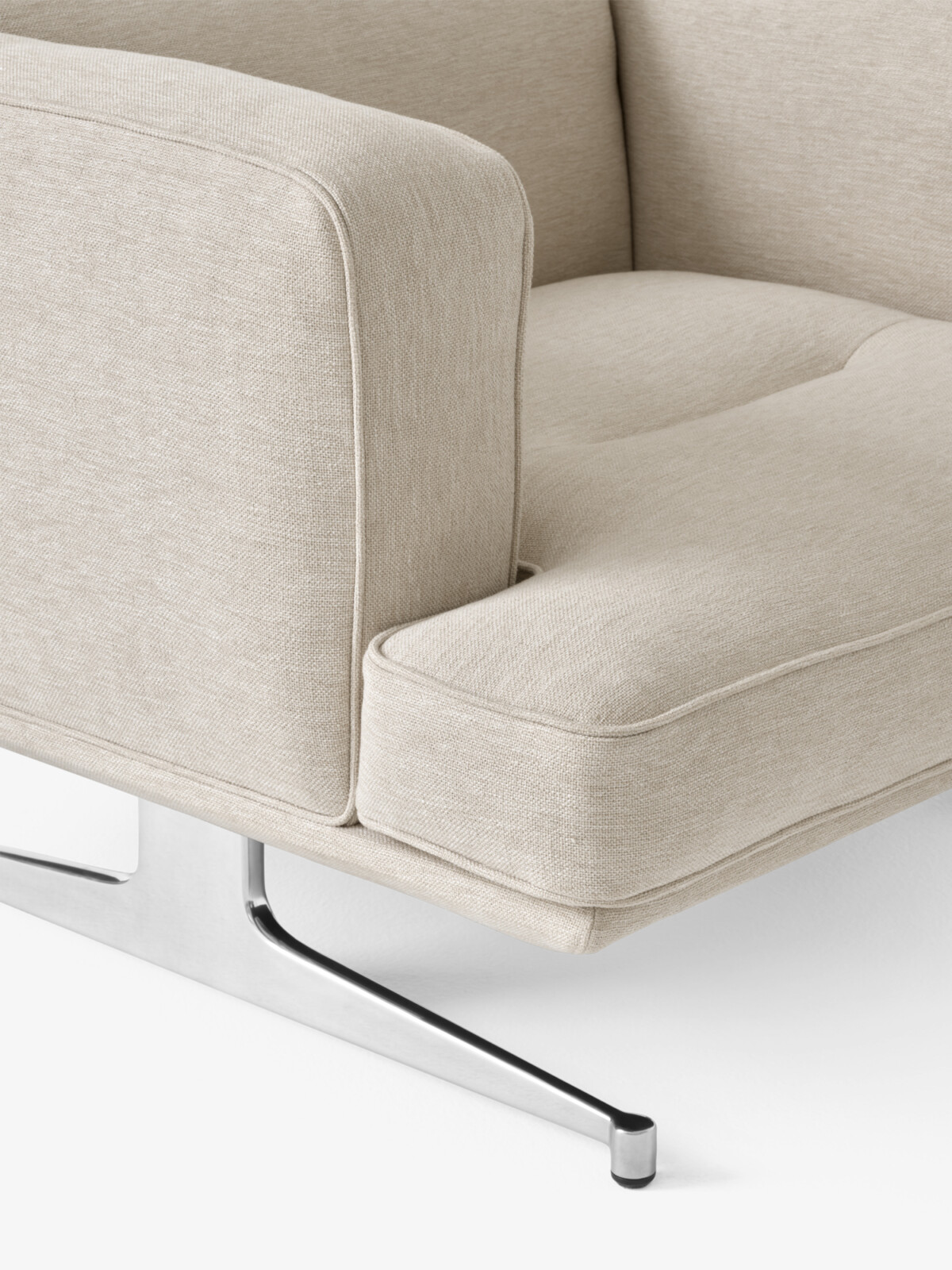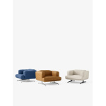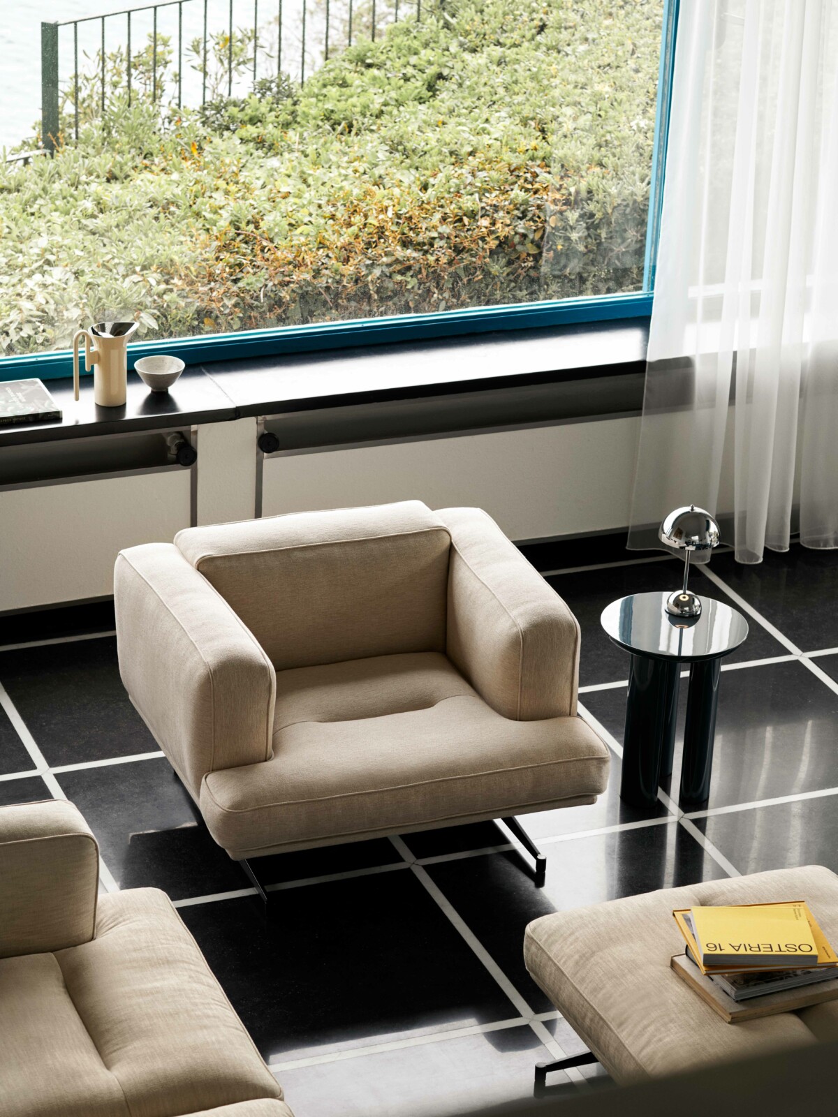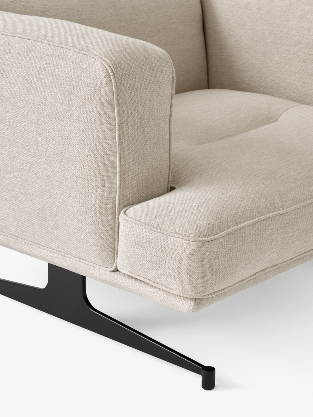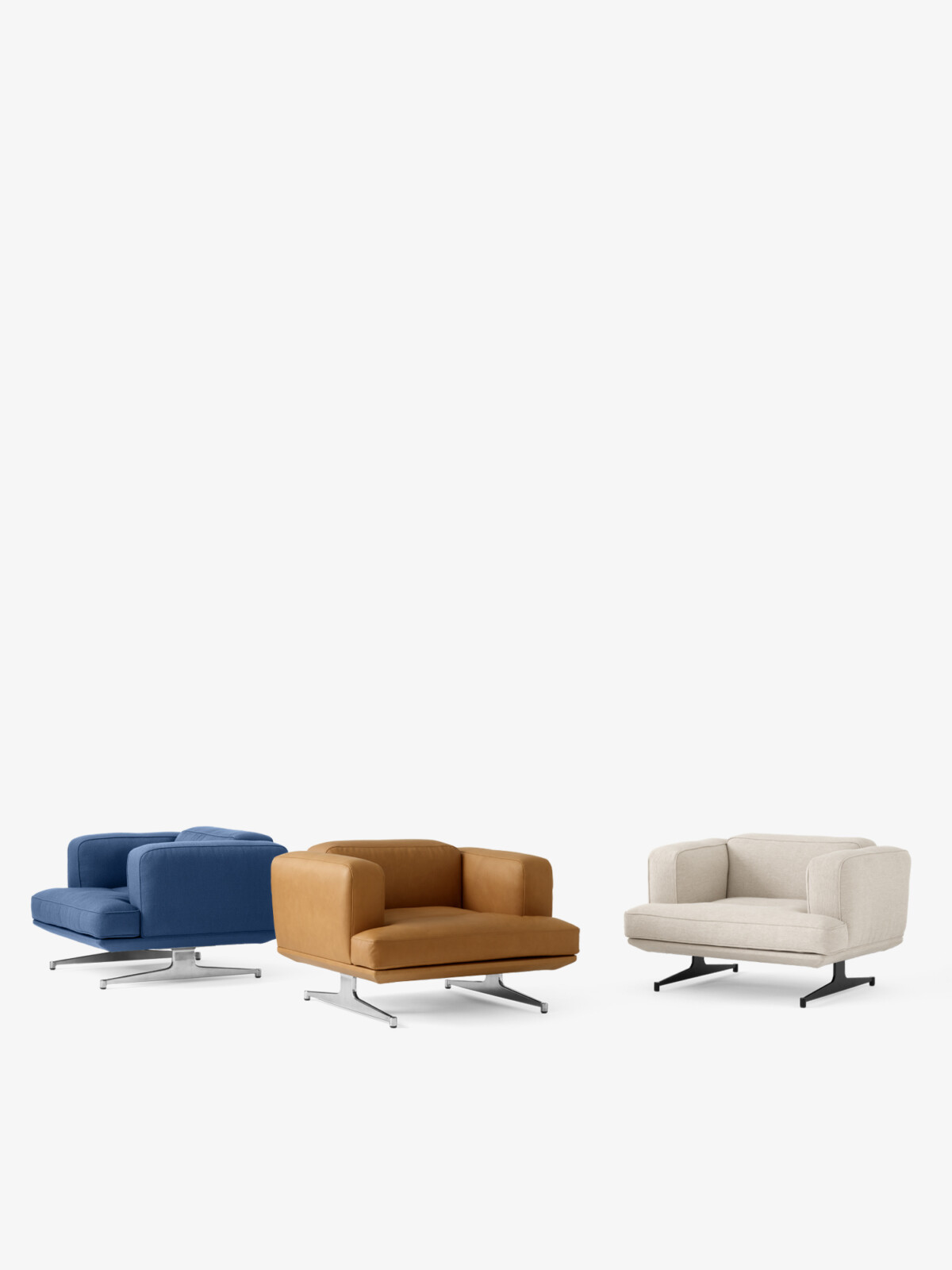 Designet av Torbjørn Anderssen og Espen Voll, tilbyr Inland-serien et arkitektonisk rammeverk som prioriterer komfort uten å gå på kompromiss med stilen. Opprinnelig utgitt som en to- og treseters sofa, inkluderer Inland-serien nå en elegant loungestol og allsidig puff, som begge gjenspeiler det originale designet med innbydende kurver og en stålfot som skaper en flytende illusjon.