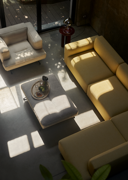 Tillegget av puff til Inland-kolleksjonen legger til et nytt nivå til settet; Muligheten til å lene seg tilbake og legge bena opp bygger på den visuelle opplevelsen av en flytende silhuett. Bruk den som en sjeselong forlengelse til Inland sofaen, eller som et ekstra sete ved behov. Puffens form og størrelse gjør den også til et funksjonelt alternativ til et salongbord ved å legge til et brett på toppen.