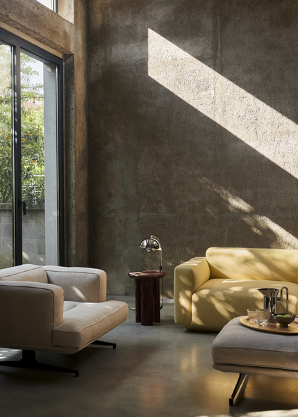 Tillegget av puff til Inland-kolleksjonen legger til et nytt nivå til settet; Muligheten til å lene seg tilbake og legge bena opp bygger på den visuelle opplevelsen av en flytende silhuett. Bruk den som en sjeselong forlengelse til Inland sofaen, eller som et ekstra sete ved behov. Puffens form og størrelse gjør den også til et funksjonelt alternativ til et salongbord ved å legge til et brett på toppen.
