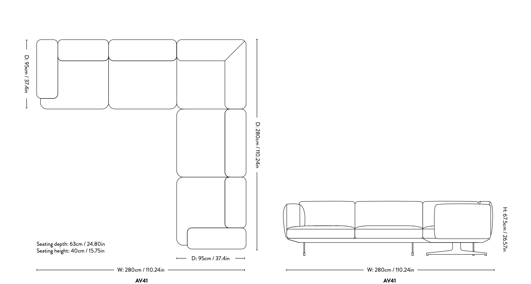 Rammen består av tre-elementer og dekkes med HR-skum, dyner og polyesterpolstring. Deretter trekkes rammen med tekstil eller lær. Metallbena er støpt i aluminium og leveres enten polert eller pulverlakkert, avhengig av utførelse. |