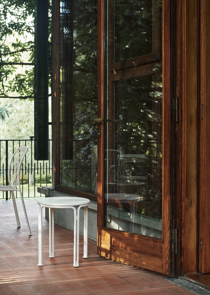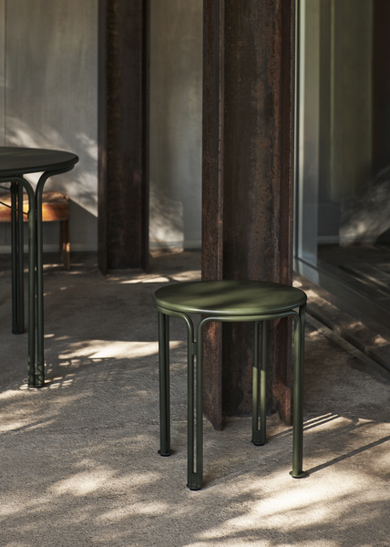 Thorvald SC102 sidebord fra &Tradition er laget av robuste materialer og kan plasseres hvor som helst, fra balkonger til terrasser. Dette lille, men solide bordet fungerer både som et praktisk sidebord og en smidig krakk. Designet av Space Copenhagen.