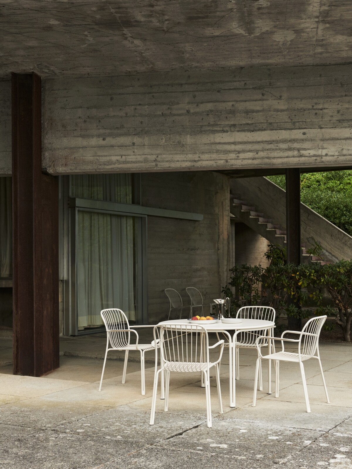 Thorvald SC98 spisebord Ø115 cm fra &Tradition er laget av solide materialer for å tåle utendørs bruk. Dette store bordet er perfekt for middager utendørs, uansett tid på dagen, og passer utmerket på store uteplasser, i hager eller på større serveringsområder. Designet av Space Copenhagen.