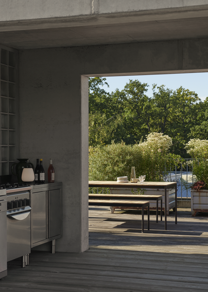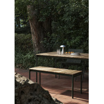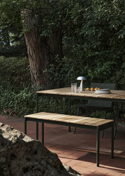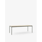 Ville AV26 bord small 220×90 cm fra &Tradition er laget av et elegant stålstel og en bordplate i teak. Designet av Anderssen & Voll, kombinerer dette bordet funksjonalitet med en visuell identitet som preges av materialvalgene.