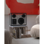 Denne høyttaleren er håndlaget av smeden Jonas Majors i hans verksted på øya Mörkö sør for Stockholm. Steel Speaker veier hele 20 kg og er designet for å synliggjøre kraften i vår store høyttalerplattform gjennom sin tilstedeværelse alene.