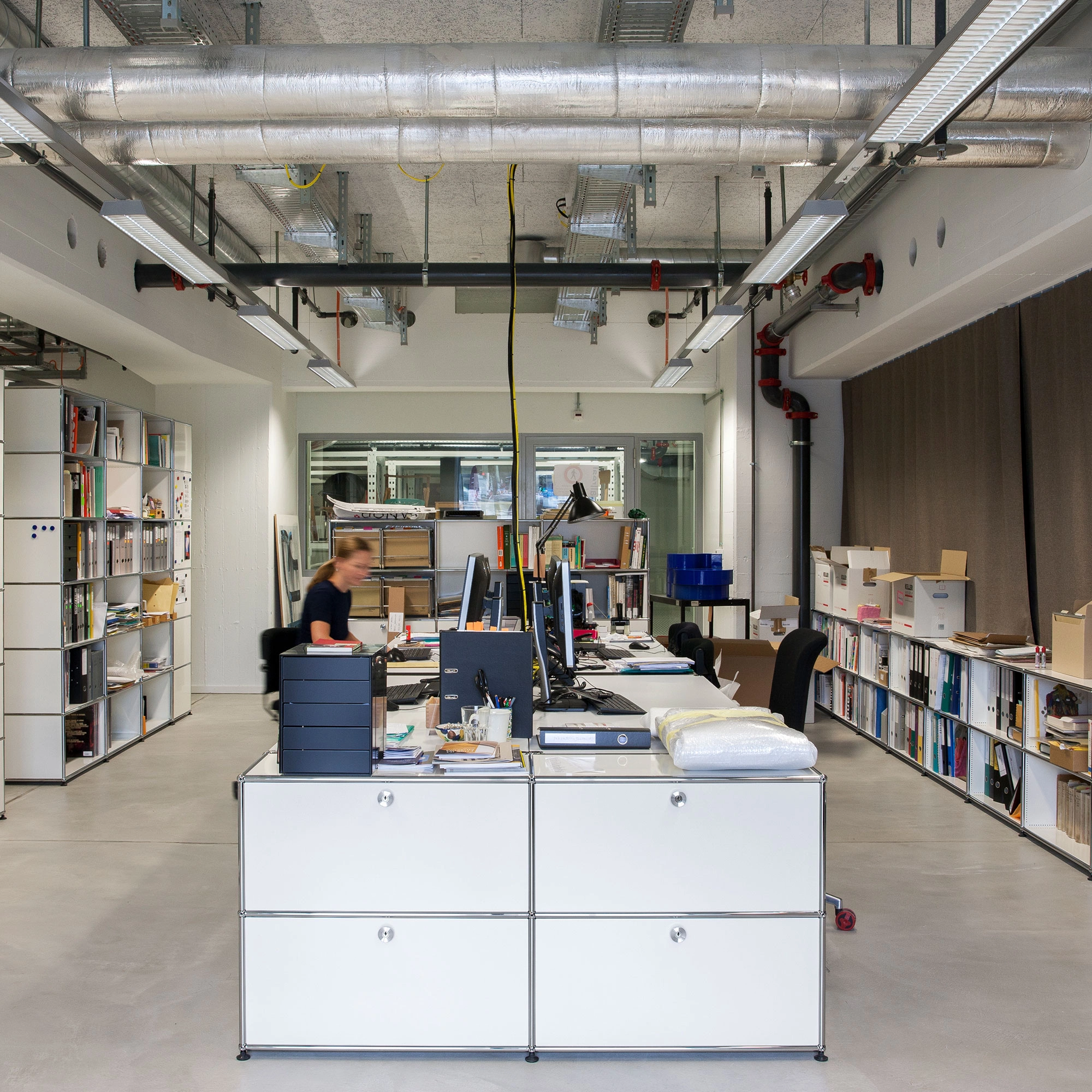 USM Haller er basert på og konstruert med tre grunnleggende elementer: kulen, forbindelsesrør og paneler. Systemet kan bygges i alle retninger, demonteres og konfigureres for endrede krav. Modulene kan tilpasses ytterligere ved å legge til dører, skuffer og en rekke innredninger for enkel organisering.