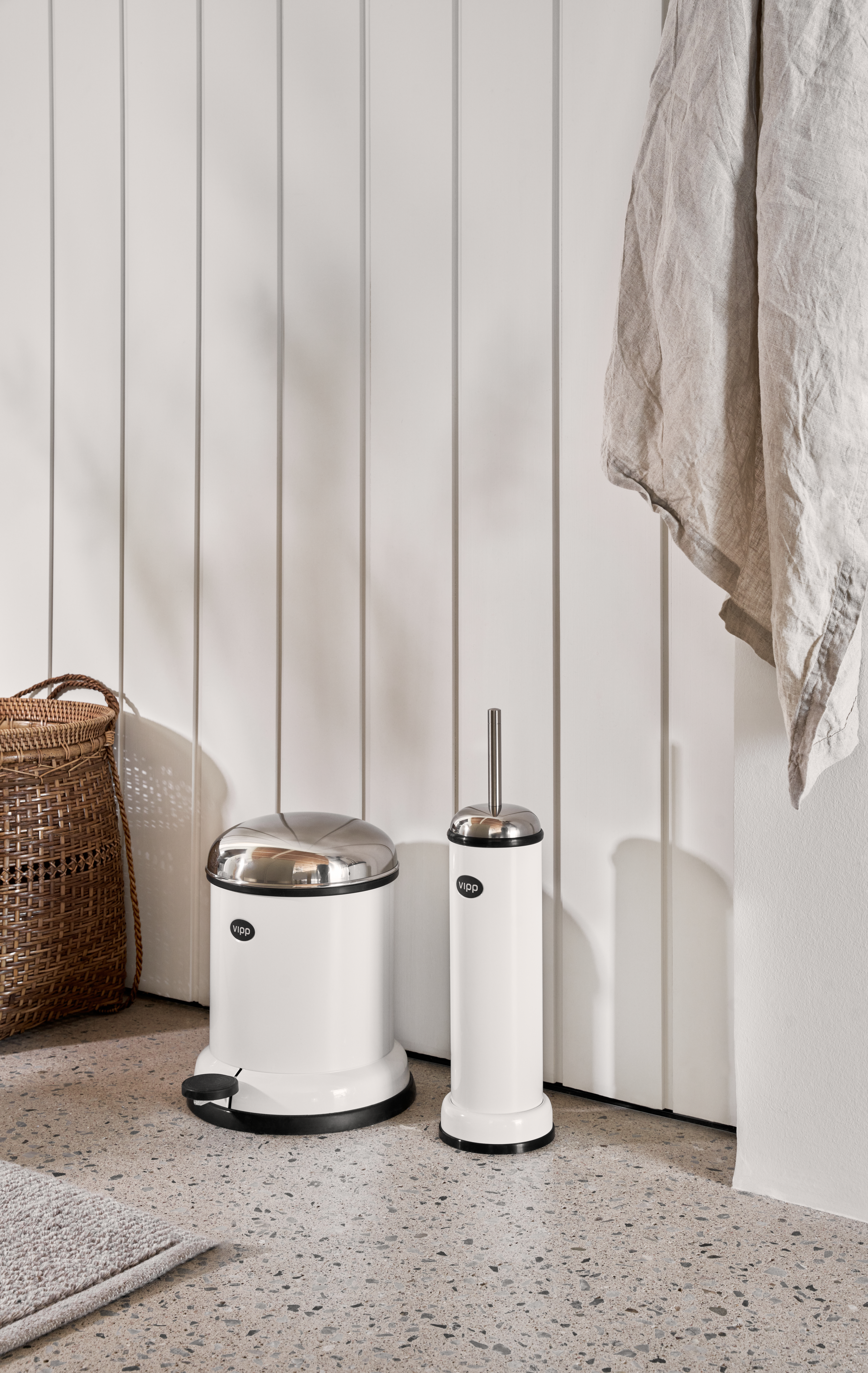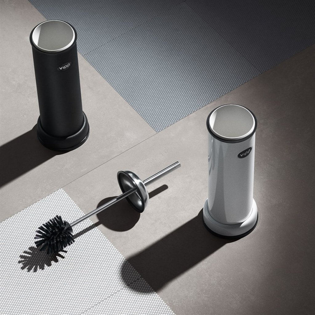 Vipp toalettbørste er en raffinert nødvendighet på baderommet. En silikonring på toppen av toalettbørsten gir lufttett lukking, mens den ekstra vekten på basen sikrer god stabilitet.