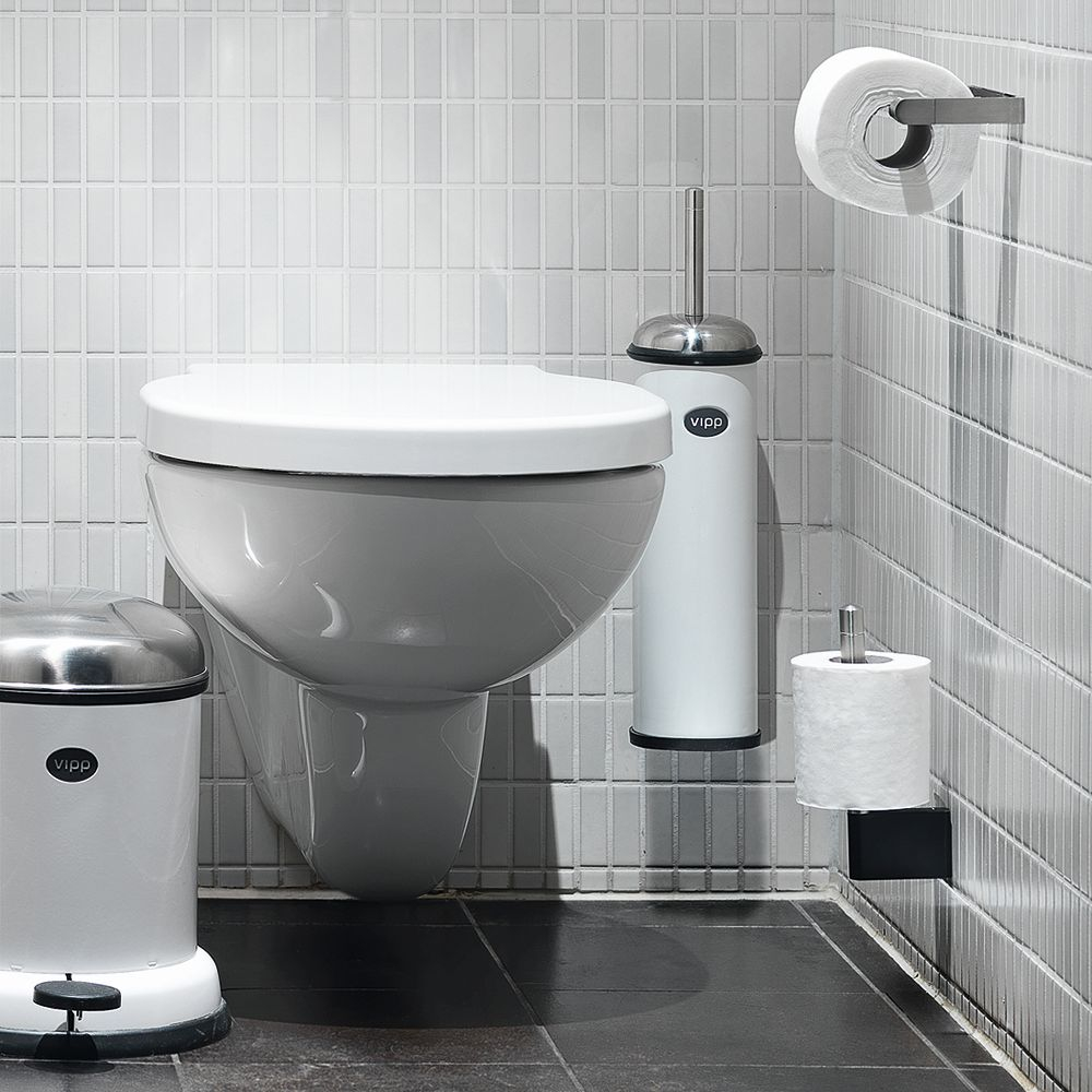 Vipp toalettbørste er en raffinert nødvendighet på baderommet. En silikonring på toppen av toalettbørsten gir lufttett lukking, mens den ekstra vekten på basen sikrer god stabilitet.