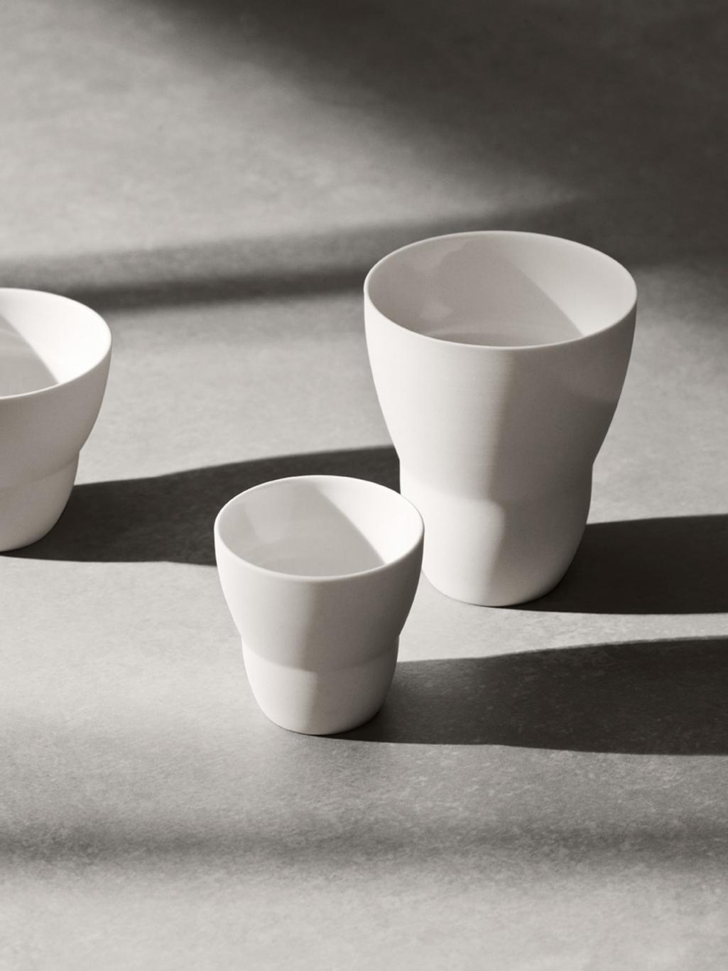 Hvorfor ikke nyte morgenkaffen fra en kaffekopp i håndstøpt porselen av høyeste kvalitet? Enten vi arbeider med stål, tekstiler, keramikk eller andre typer materialer for et nytt Vipp-produkt, skal formen tilrettelegge for funksjon, og dermed elimineres alle unødvendige estetiske detaljer.
