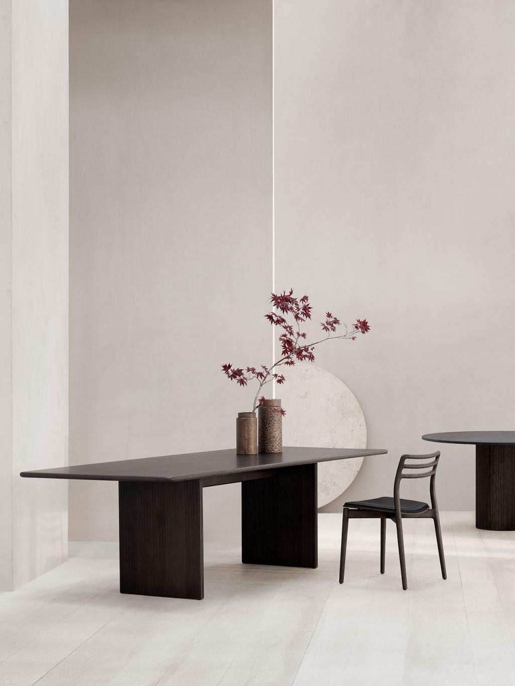 Materialer: Lys eik: oljet, anilinlær. Mørk eik: oljet, anilinlær.