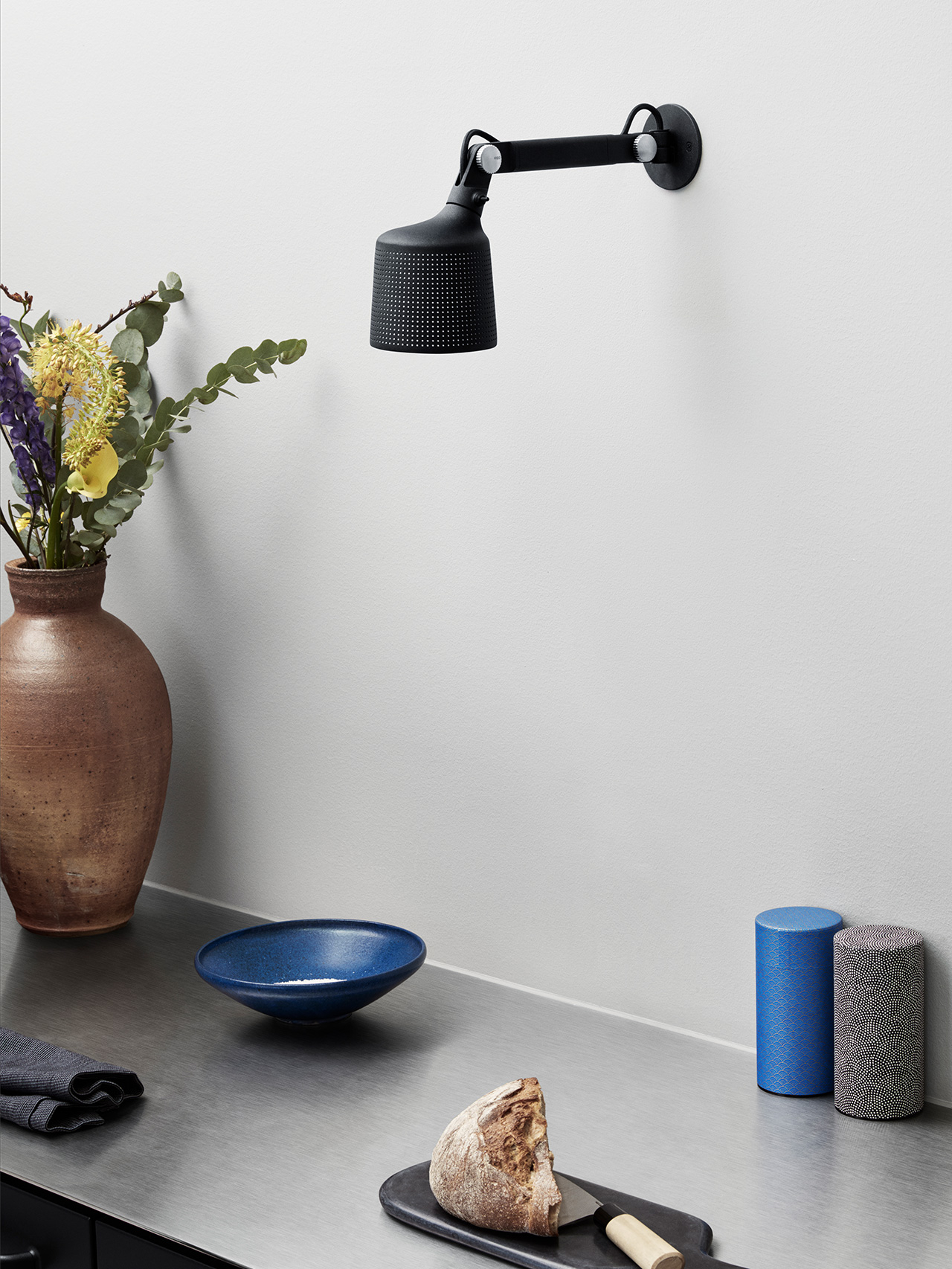 Den kortere bøyelige armen på den lille vegglampen er lengre enn på den opprinnelige vegglampen og kan beveges både loddrett og vannrett, noe som gjør at den tilbyr optimal funksjonalitet samtidig som den krever minimalt med plass.